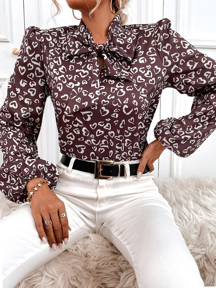 Long Sleeve Chiffon Leopard print Turn Down Collar top