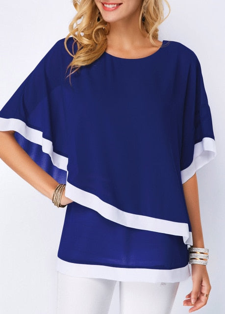 Women Chiffon Long Sleeve Turn Down Collar Office Shirt