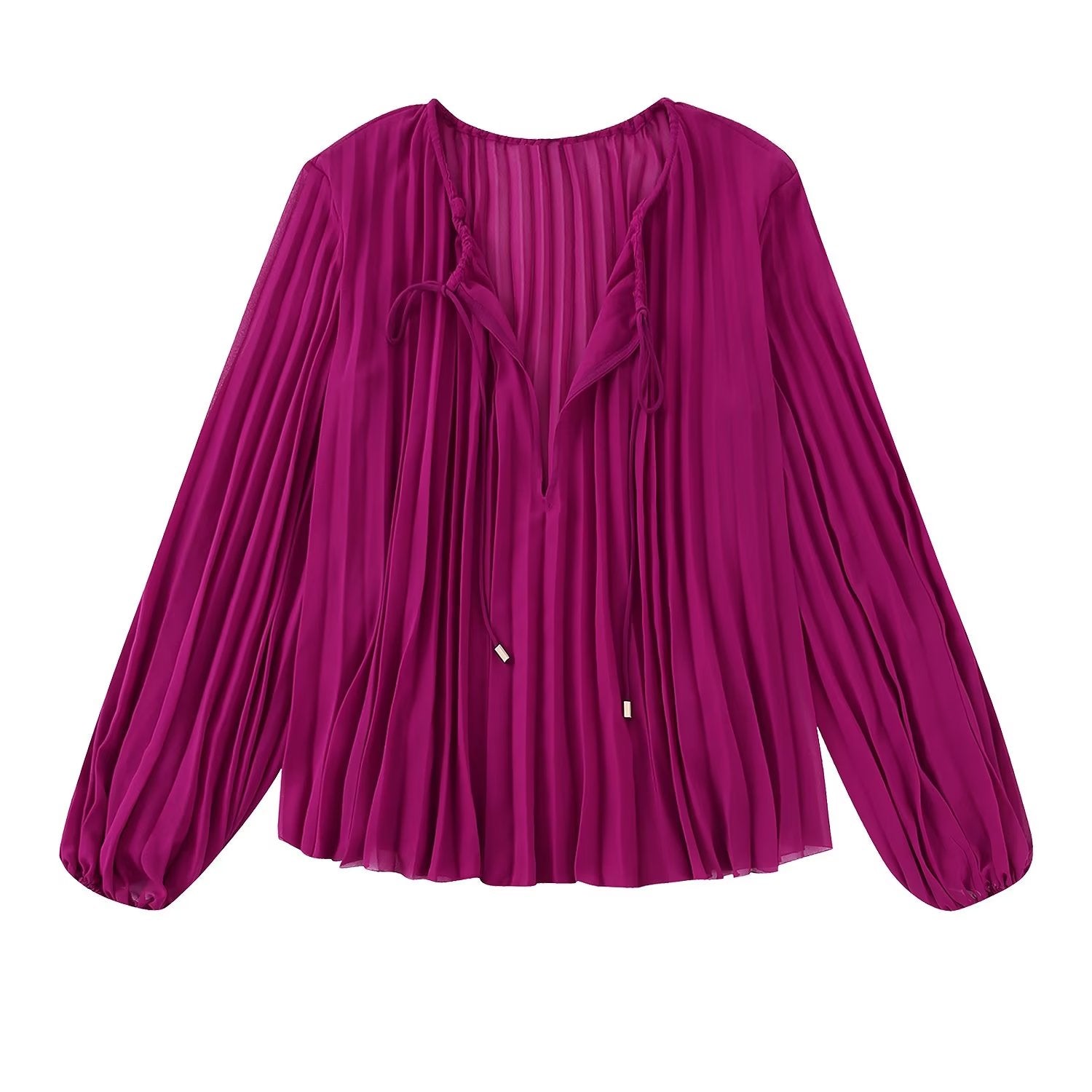 Deep V Neck Long Sleeve Solid Vintage Loose Blouses For Women