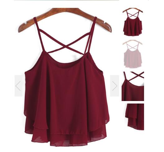 Material:PolyesterFabric Type:WovenTops Type:CamisDecoration:Hollow OutClothing Length:Short  Size Chart Size Bust (cm) Waist (cm) Hip (cm) Length (cm) S 70-84 / / 20 M 74-88 / / 20.5...