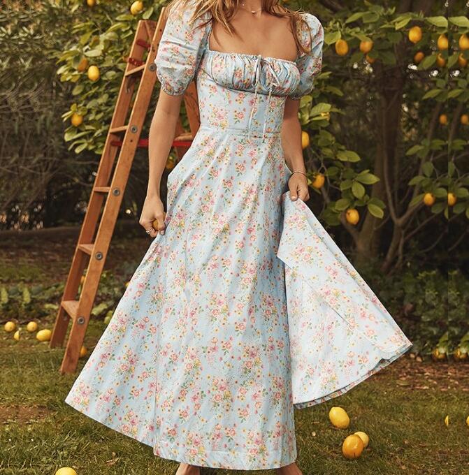 Size: S, M, L, XL, 2XL, 3XLColor: Black, Light Blue, Navy Blue Season: Women summer dress Style: Casual, Boho, Elegant, Party Pattern: Floral print dress Feature: Short sleeve long dress Decoration:...